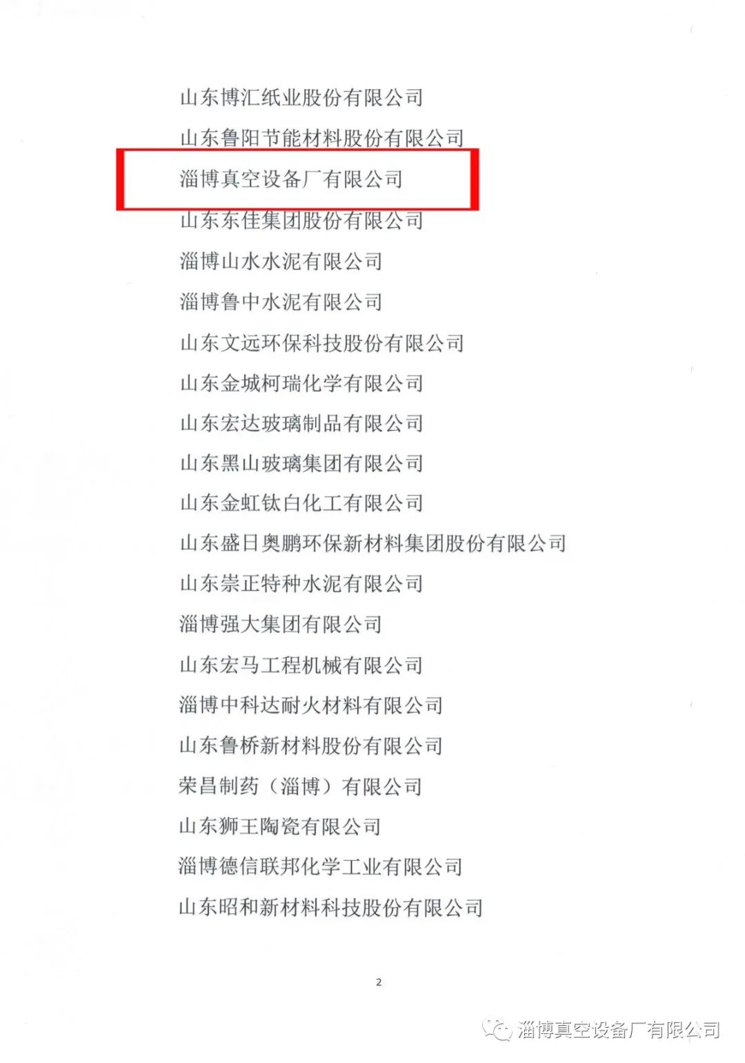 淄博真空設(shè)備廠有限公司獲得淄博市第一批“綠色工廠“榮譽(yù)稱號”